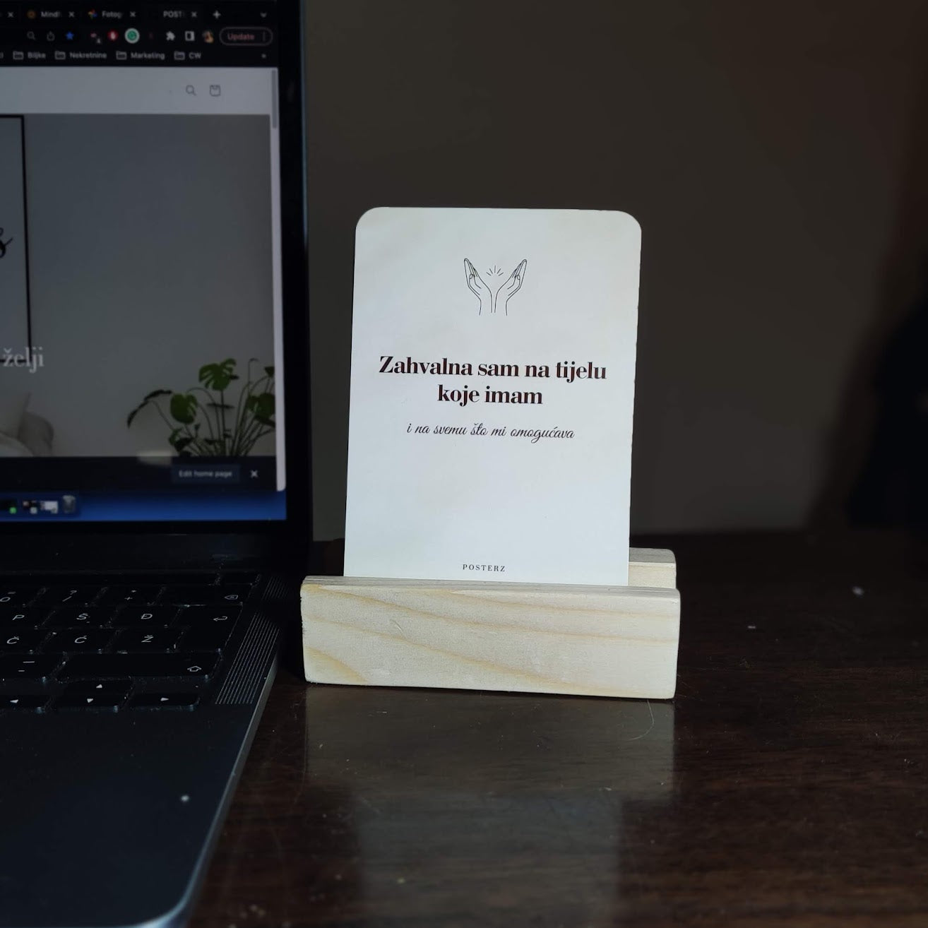 Kartice dolaze s unikatnim drvenim postoljem (izrađenim od još jedne snažne žene poduzetnice) kako bi uvijek bile u tvom vidnom polju.